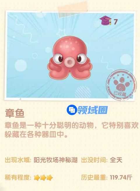 1、章鱼只能在阳光牧场的神秘湖中找到,别的的地方没有,全天出现。