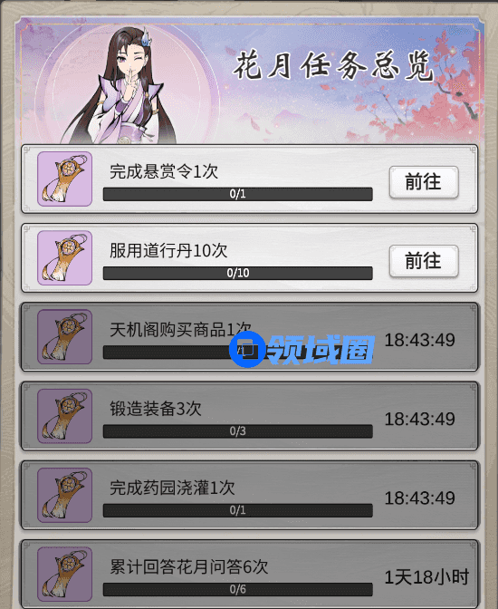 活动期间每天会刷新对应的日常任务,完成任务获取花朝令开启拼图,根据解锁拼图数量来获取累计奖励!