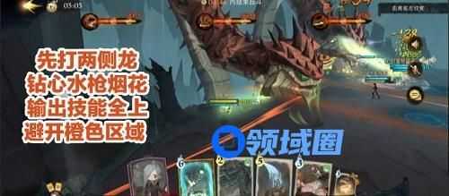 2、先打两侧龙,用钻心水枪烟花输出技能全上,避开橙色区域。