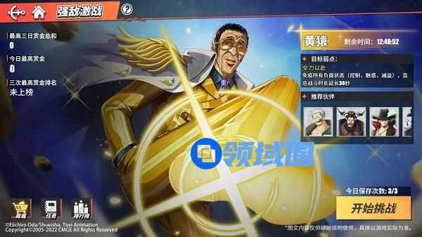 活动期间,船长们可以每日挑战黄猿3次,黄猿每日的状态不同,船长们可以根据黄猿当日的状态选择合适的伙伴进行挑战。