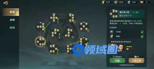 1、30级前主鱼鳞阵后方圆阵,30级后主方圆阵,长蛇阵,次主力输出系攻击阵,接着战防阵,策防阵,资源有限其他先不升。