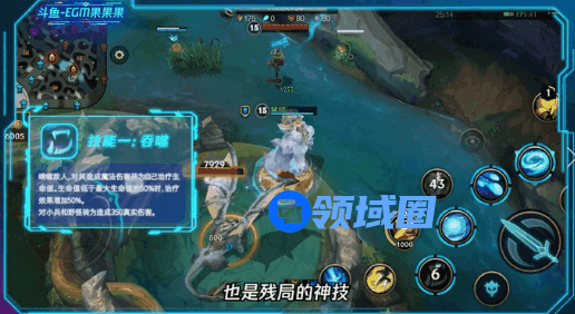 Q(1)技能是努努的核心刷野技能,也是残局的神技。在推荐的装备满装之后,一个Q(1)技能在残血时,能提供900左右的回血量,开了石像鬼板甲之后更是能到达1000多的回血,对没有出魔抗的敌人,也能造成300多的魔法伤害。