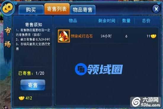 玩家可以再这里找到自己寄售物品的信息,也可以做下架处理,同一时间最多只能寄售20件物品。