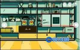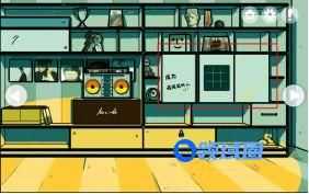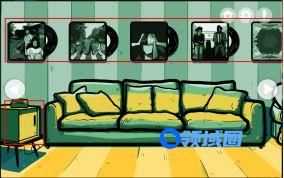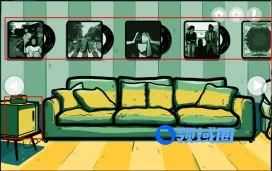 点击左侧的小冰柜,打开冰柜可以获得【一桶冰块】,沙发后面挂着的唱片点击可以查看