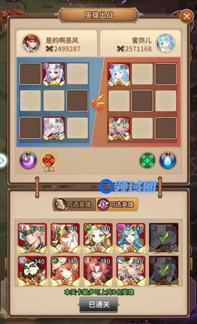 1、第二关就按照上图的角色进行上阵和站位,没有的角色可以用其他的角色进行代替,本关只用上阵俩角色,还是比较简单的,不过不能保证战斗力,可能会影响到通关。