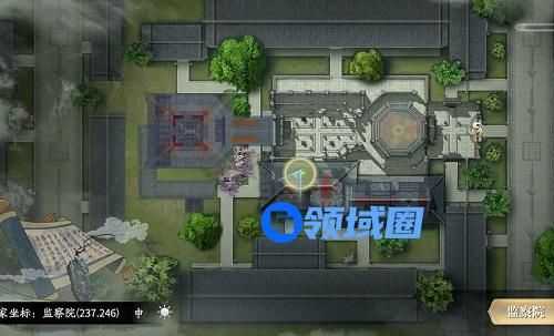 1、开监察院大地图点中间那个建筑物中间直接自动走进去左边楼梯直接上二楼,不知道具体位置的可以看上图。