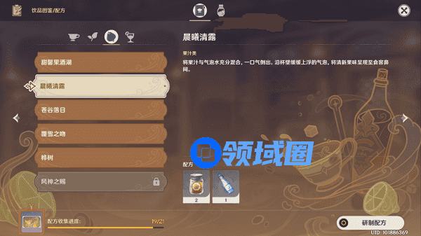 原神晨曦清露是曲生酌微饮品之一,玩家需要根据指定的配方研制,因此很多玩家想知道原神晨曦清露配方是什么?原神晨曦清露配方怎么研制?下面和游戏宝小编一起去了解一下吧。