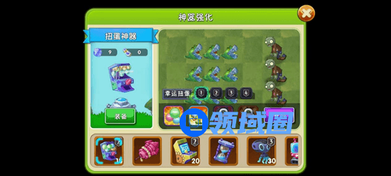 三、使用扭蛋神器,一阶即可,需要赌扭蛋出鳄梨或者毒影菇减速,对植物配置要求依旧较高,一般需要尝试次数较多,因人而异,各自运气不同,同样是在第二波出现时使用,比较看运气。