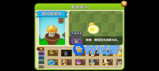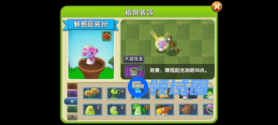 挂件上优先选择减冷却的挂件,如果没有四阶植物的话可以选择节能罐,毕竟阳光菇不能种太多,家族推荐减冷却和返还阳光。
