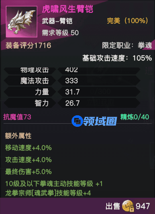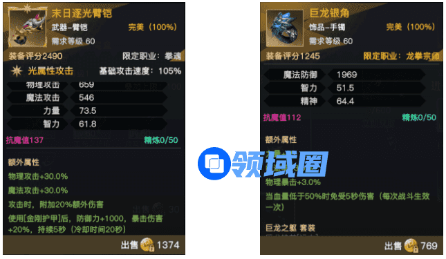 龙巢商店宝箱开出的这个橙武新增了防御特效,十分适合龙拳宗师;职业手镯也可以给龙拳宗师更多的血量保护。