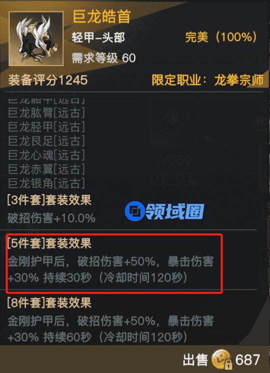 不要忘记了超强的职业套装哦!5件套效果可以让龙拳宗师在爆发层面有一个飞跃式提升。