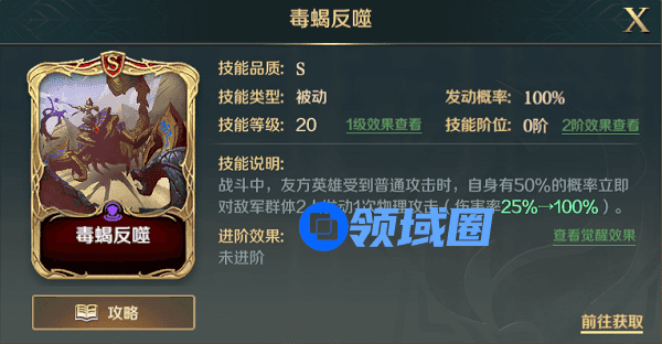 敌方每次普攻时,此技能的携带者都将有概率对敌方两名英雄造成伤害,此技能在对战普攻次数多的队伍,如突击队时有非常好的效果。同时毒蝎反噬也是被动技能,基本不受控制效果的影响。