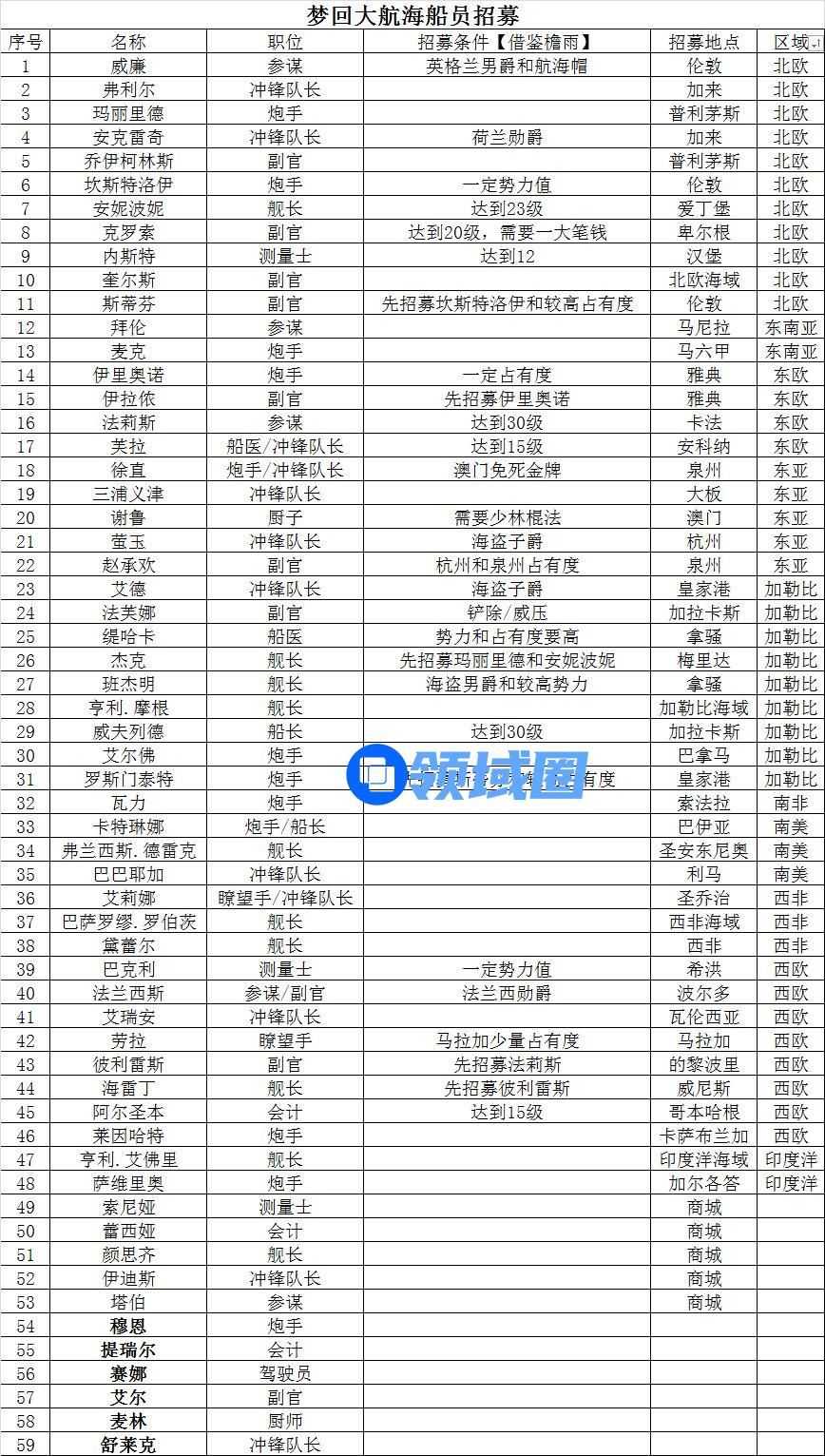 梦回大航海船员招募是需要完成对应的条件的,因此很多玩家想知道梦回大航海船员怎么招募?游戏宝小编为您带来梦回大航海船员招募条件位置攻略。
