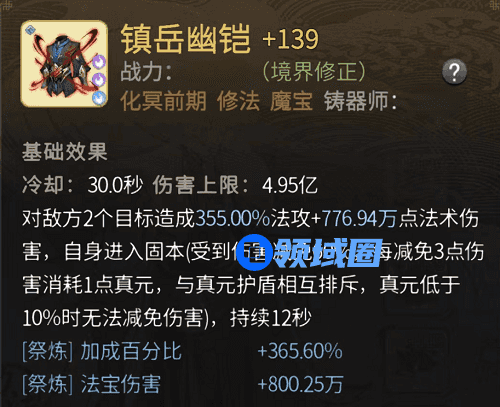 法宝基础冷却时间÷(1+回灵增幅),例如壶基础冷却38秒,带回灵17%词缀的情况下,第二条器纹回灵又是23%,所以壶实际冷却时间为38÷(1+0.17+0.23),约27秒。