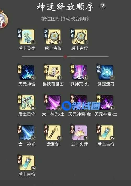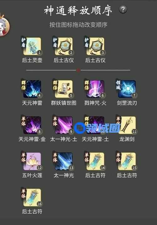 一般仙法壶起手都是在11-13号位置结束,大家根据自身情况去调整太一位置;如果带四盾,或者三盾里用神通盾替换掉一个法宝盾的话,就把天元土替换掉。