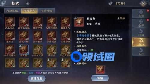 1、在内功选择方面,单剑专用内功四种,《崭天堑》释放技能额外增加剑意值,凌云状态下所有技能冷却时间降低2秒。