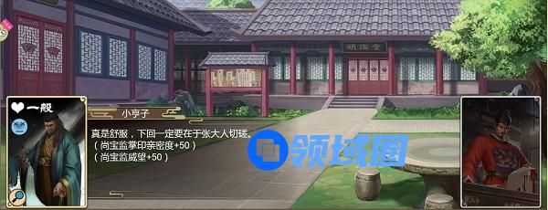 1.进入典当行触发剧情事件,尚宝监小太监典当物品,与商会会长讨价还价。帮忙理论,亲密度+100,补足差价200银两,亲密度+120。提示尚宝监开启,夜晚可前往皇城正门,十二监进入尚宝监。