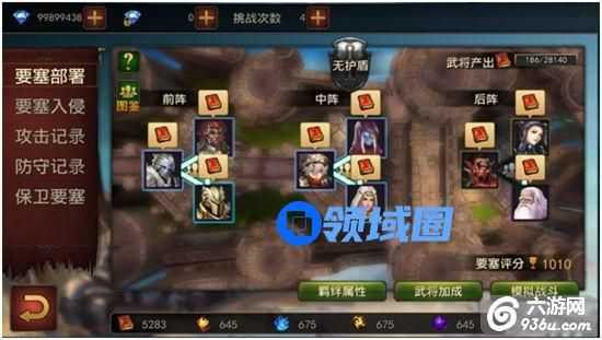 在战场上,武将与你并肩作战,共同杀敌,它无疑是你最好的帮手,武将对你也是绝对的忠诚。要塞系统既是武将大展拳脚的好地方,又是武将成长的重要途径。他们在要塞系统为你守护着你的要塞,也是你征服他人要塞的先锋。