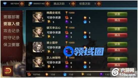 武将的羁绊很重要,有属性加成的,也是你防守不被人偷袭夺走资源的方法。入侵掠夺别人的资源挑战次数是不限制的,如果觉得资源较少不妨点点刷新,会有意外惊喜,资源多的让你惊叹~,但是这个时候你就要考虑你的战力能不能打的过人家,小编提醒风险和利益是并存的,抢过来的奖励可以提成的武将等级和突破武将用的。