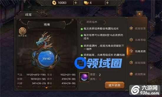 特别提示:宠物技能的修炼,会直接增加人物属性,而且不是失败哟,只要熟练度满了,技能碎片足够就能进阶啦