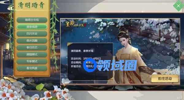 皇帝成长计划2清明踏青活动有康泰福愿、四月芳菲、曲水流觞、春日百艺,因此很多玩家想知道皇帝成长计划2清明踏青怎么过?游戏宝小编为您带来皇帝成长计划2清明踏青攻略大全。