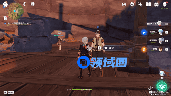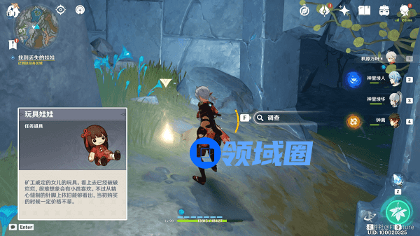 终于,在崎岖岩厅的西南边,我们找到这位名叫「戚定」的矿工,但他告诉我们,他把好不容易给女儿买来的玩偶弄丢了,想到女儿失望的神情,不知道如何是好,我们决定帮帮他。