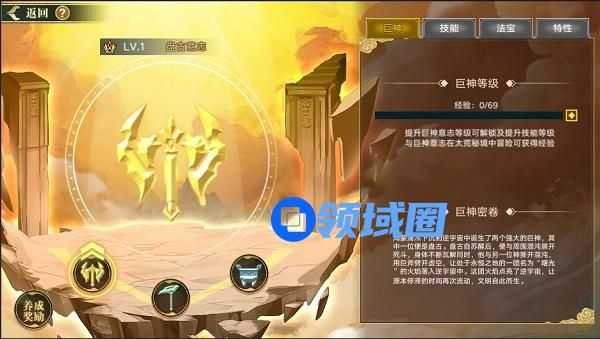 3、通过参与太荒秘境-简单难度,通关时携带的巨神意志将获得一定数量的经验值。巨神将根据等级激活对应的技能效果,强化巨神在战斗中的效果。