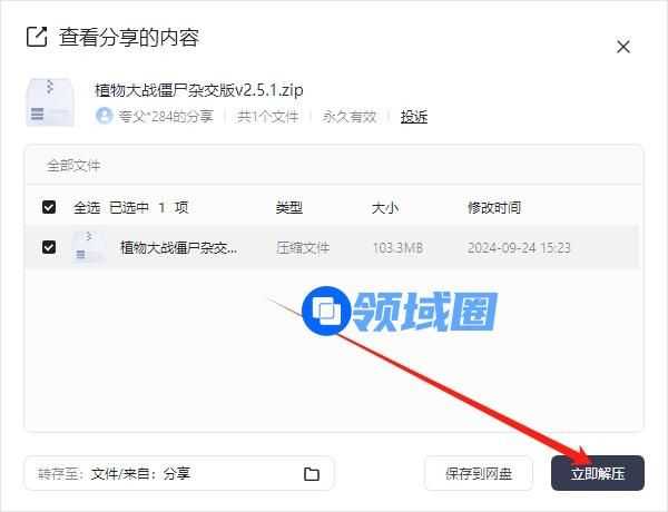 1、复制上方链接打开夸克网盘,会自动跳出分享数据,点击“立即解压”。