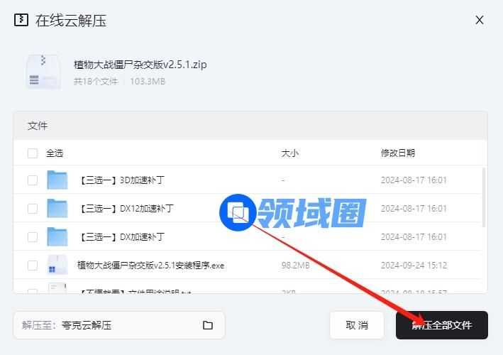 2、然后点击“解压全部文件”,解压完成后点击“立即查看”。