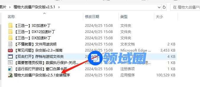 4、下载完成后,在本地点开文件包,点击[植物大战僵尸v2.5.1安装程序]。