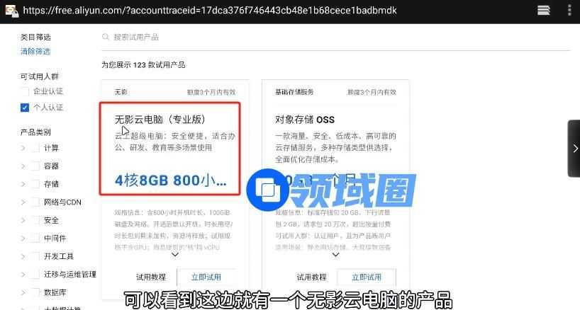 3、进入第二页可以看到这边就有一个无影云电脑的产品。
