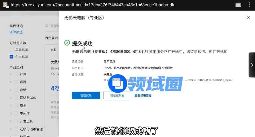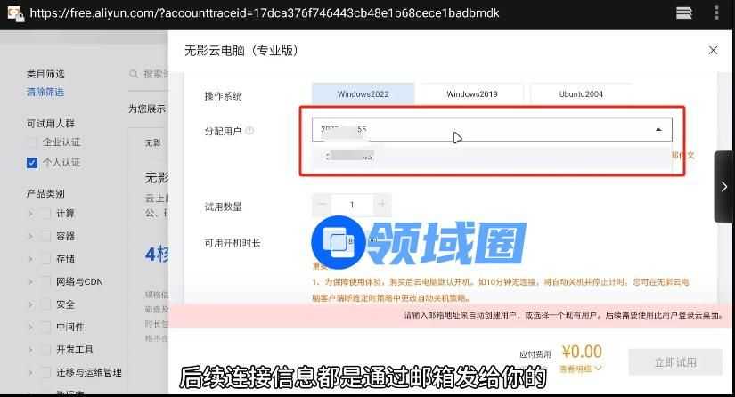 6、可以看到一分钱不用就能白嫖三个月且800小时的云电脑。点击立即试用,然后就领取成功了。