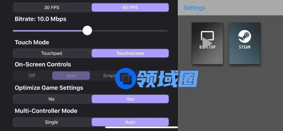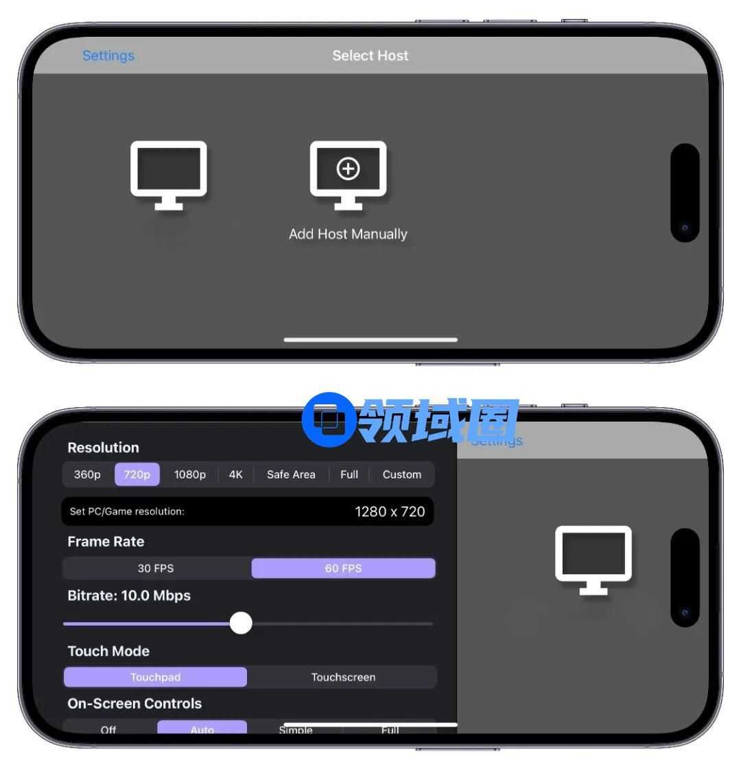 3、在iOS上打开Moonlight,连接到电脑上,这个时候显示的画面是有很多控制键。