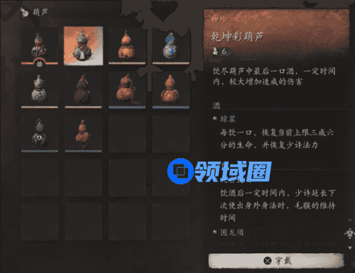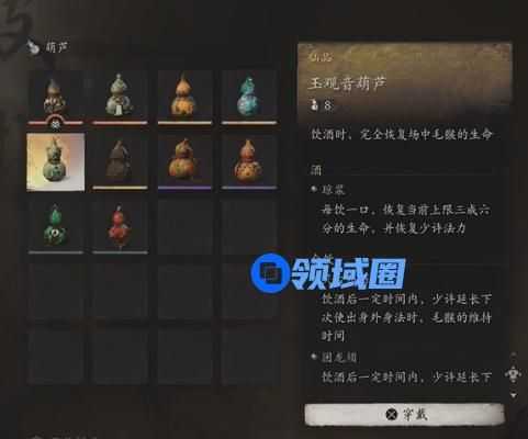 黑神话悟空6件灵物分别有着不同效果,主要效果根据玩家的需求去选择,例如想要生存的九可以选择上清、彩玉以及青天,都有回复生命值的效果,帮助提高容错率。