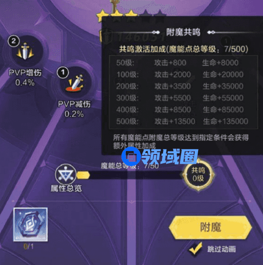 ● 魔典三星后开启附魔,附魔会增加PVP增减伤这些稀有属性,对战斗的影响是比较大的,不过消耗比较大,大家可以看情况投入。