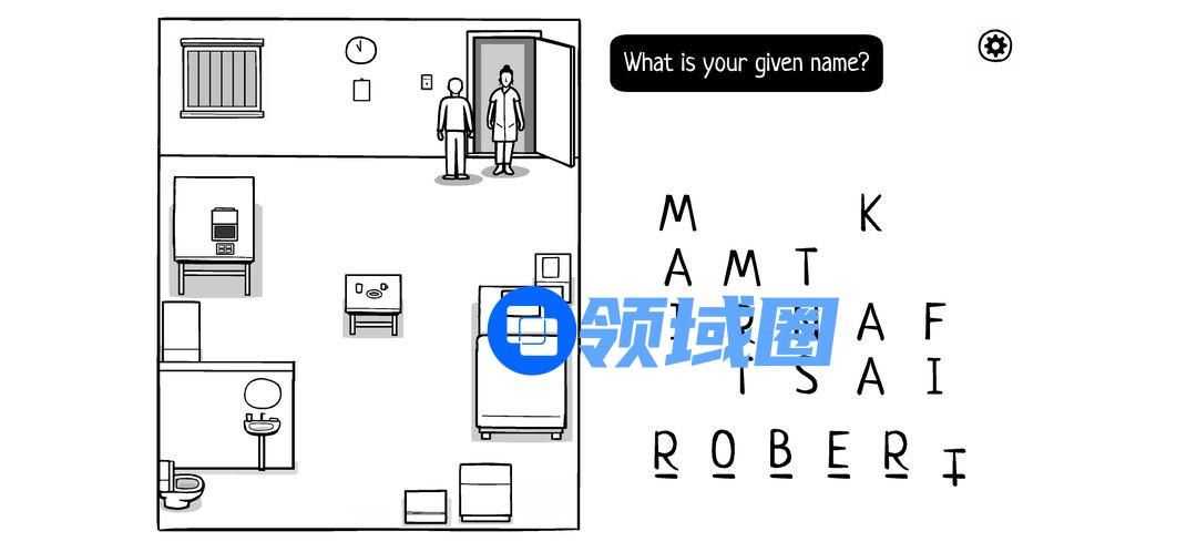 医生会进来问问题。第一个问题,你的名字叫啥?在之前名片上已经见过,寻找字母,输入:ROBERT