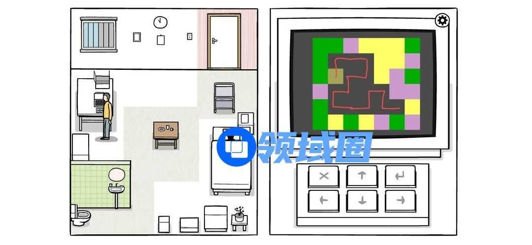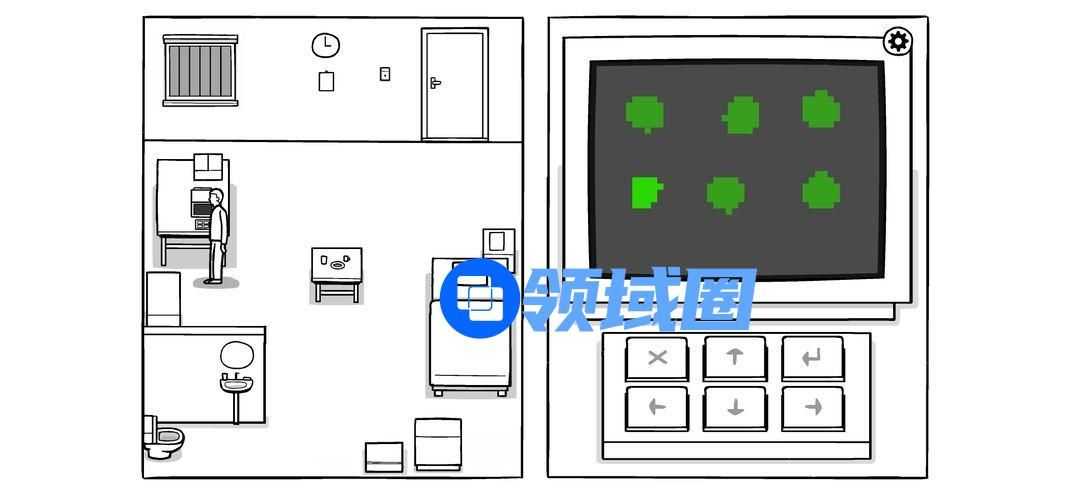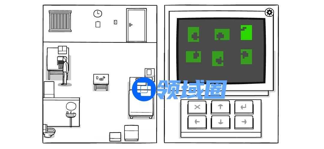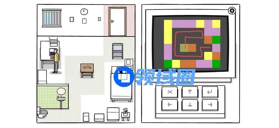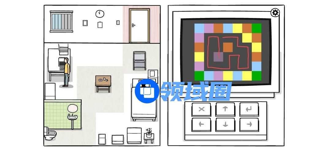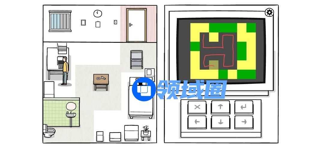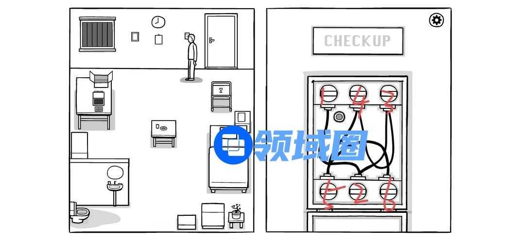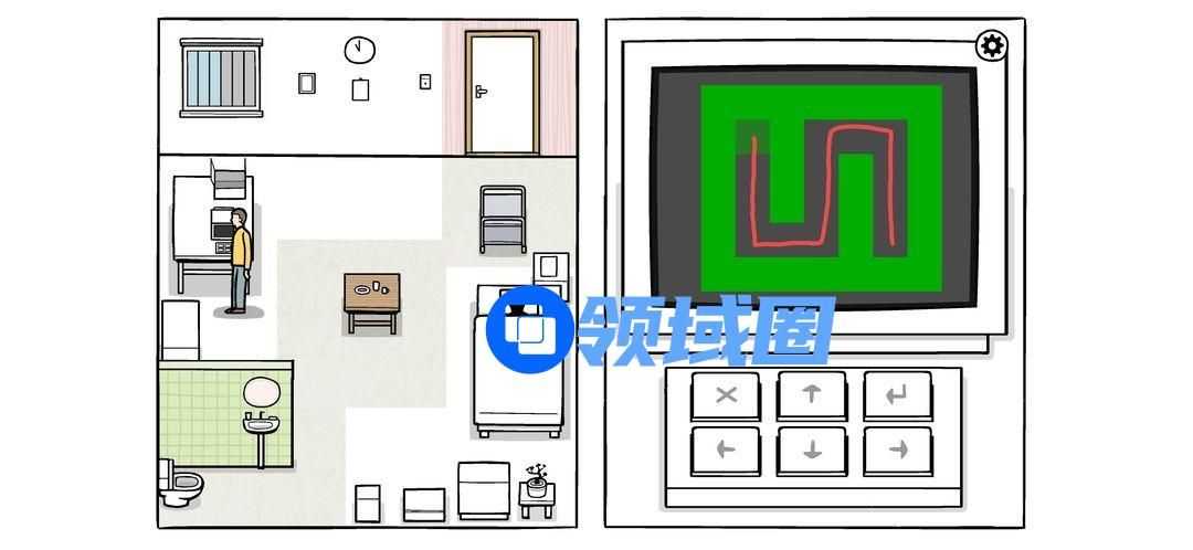 按密码打开柜子(图中最后一个密码是错的,因为对的话无法截图),拉开柜门,完成两个迷题(解法如下图),电视机两个绿灯亮起,可以打开观看。按按钮调台,一直到最后警报响起。