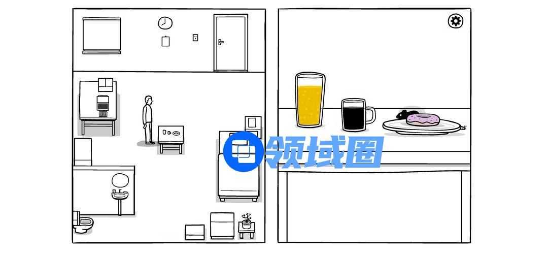 按照要求吃早饭,点击即可,水的话需要按住杯中液体往下拉(要全部吃完哦,虽然旁边菜单只有甜甜圈和咖啡,多的那杯……可能是药吧)