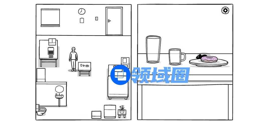 然后吃早饭,水喝掉,发现个耗子偷吃甜甜圈,追着揍,直到揍趴下(盘子,水池,电脑,柜子,盘子)