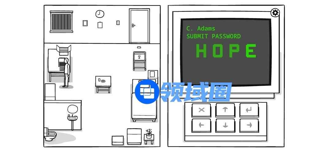 点击键盘上的“X”返回上一级。到人名页寻找最后一封邮件的落款人:Adams。输入密码:HOPE。发现只有一封邮件,点开记下落款人名。(提及的密码抽屉第一格文件封面有)