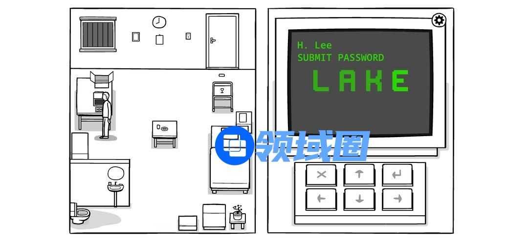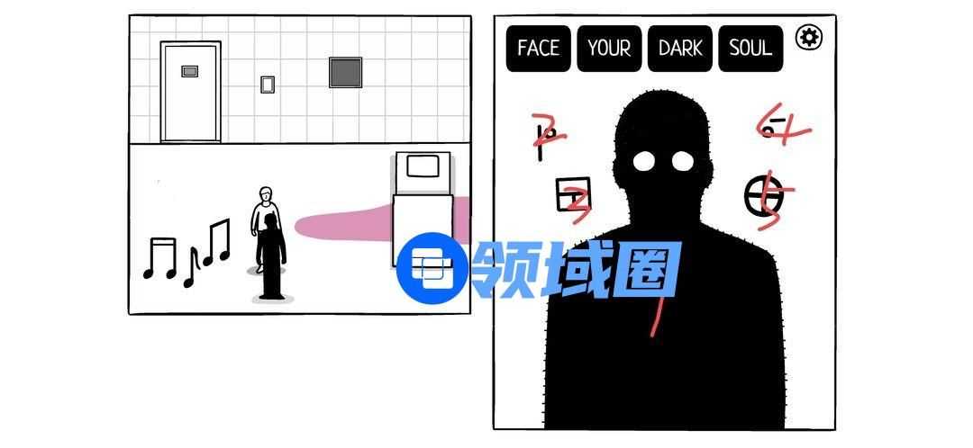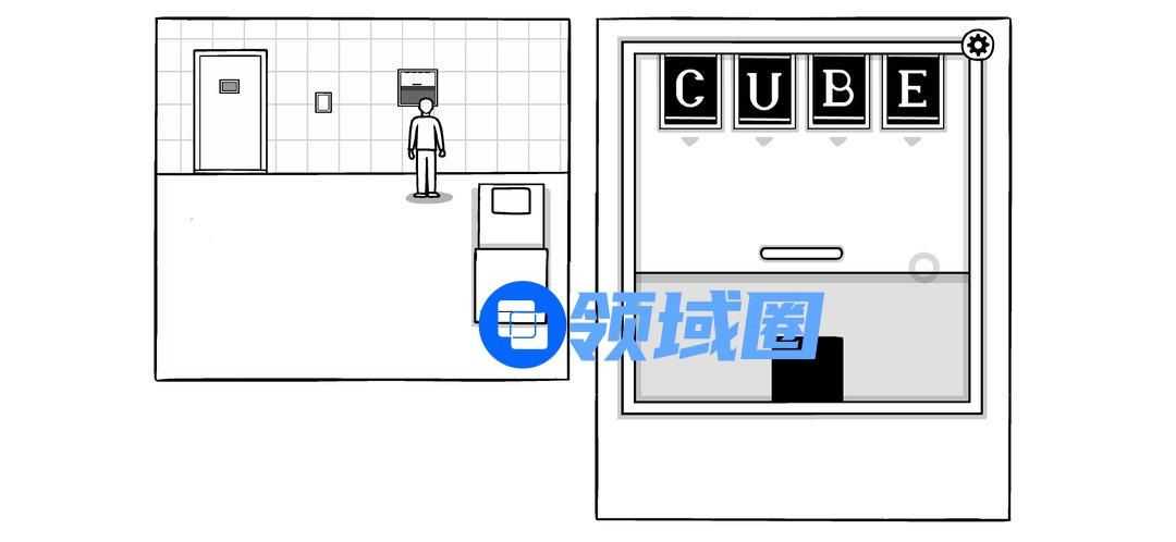 先不着急输入密码,来到门前,拉开格挡,发现大脸不见了,取而代之是四个字母。输入:CUBE。出现黑色小方块(成就)