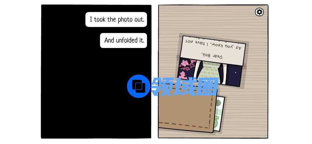 成就解锁。走到抽屉旁,打开最后一层,点击名片上的头像,使其恢复色彩。