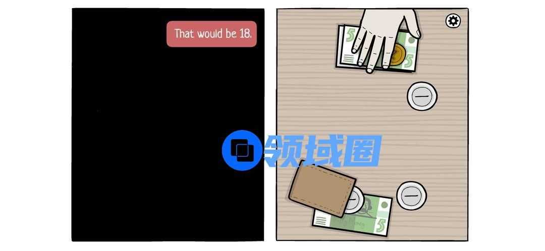 按照要求向右拖拽,来到画面左边,要一杯酒,将手向上拉,再掏出钱包。