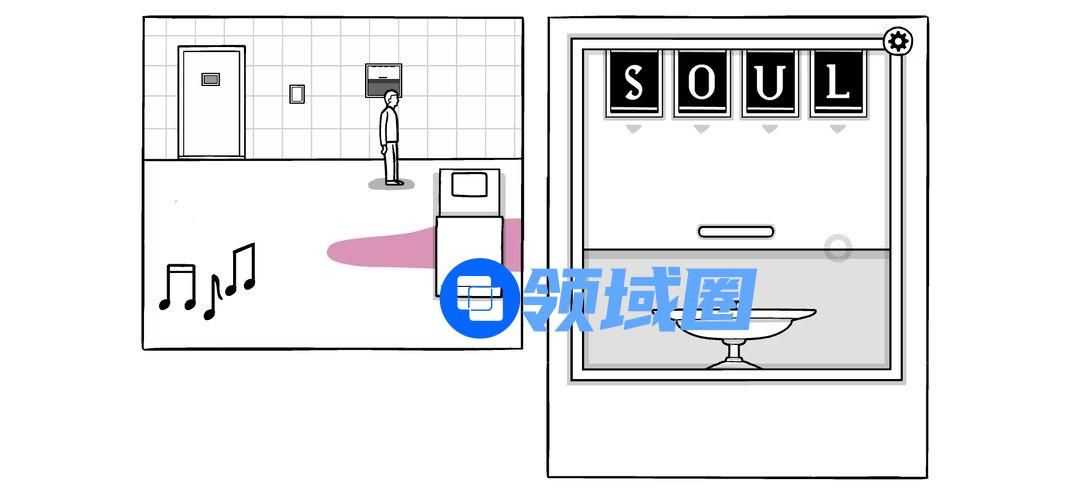 继续主线游戏。在密码箱输入字母:SOUL。出现小胶囊,拉开胶囊,将里面的小黑放出来。