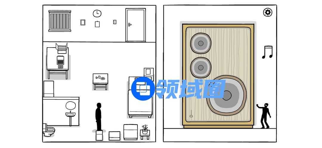 音箱。点击大喇叭出现音符,上方两个小喇叭调节方向,到小黑正上方时再点击大喇叭让音符掉下,砸小黑。