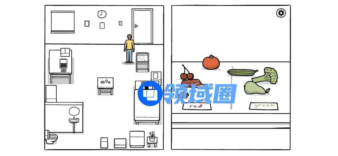 回到主线游戏。拉开窗户,每恢复一块色彩窗户都会多一条彩色。吃东西,门口的按颜色分类,然后点击吃掉。早餐照常吃。