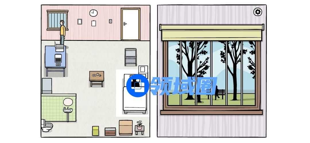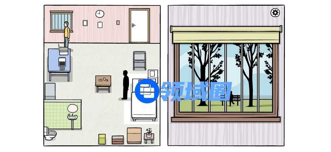 点击高亮窗户拉起卷帘,向左拖动到图右侧,点击电视机观看电视(电视最后成就解锁)