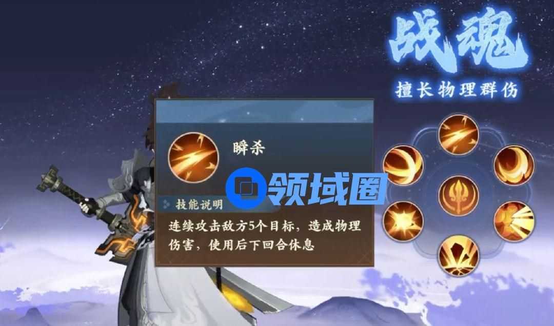 战魂,物理群伤,给敌方5个单位造成大量伤害,被动技能是增加暴击几率,特点破防眩晕高续航