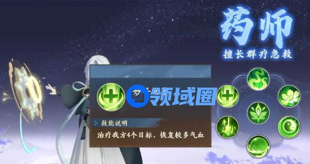药师,全体治疗,一次回复4个目标,被动是提高受到攻击时的所获得的愤怒值,相比医仙更实用稳定