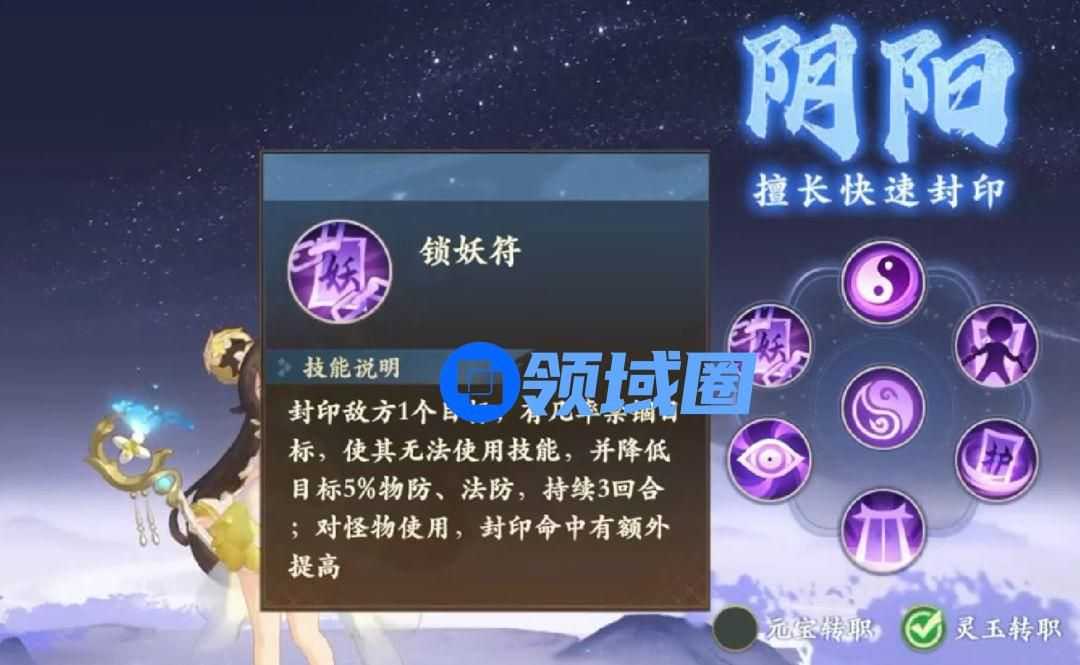 阴阳偏向于PVP,高速封印,大概率封印目标且降低双抗,被动增加自身5%的速度,特点禁止复活、克制隐身
